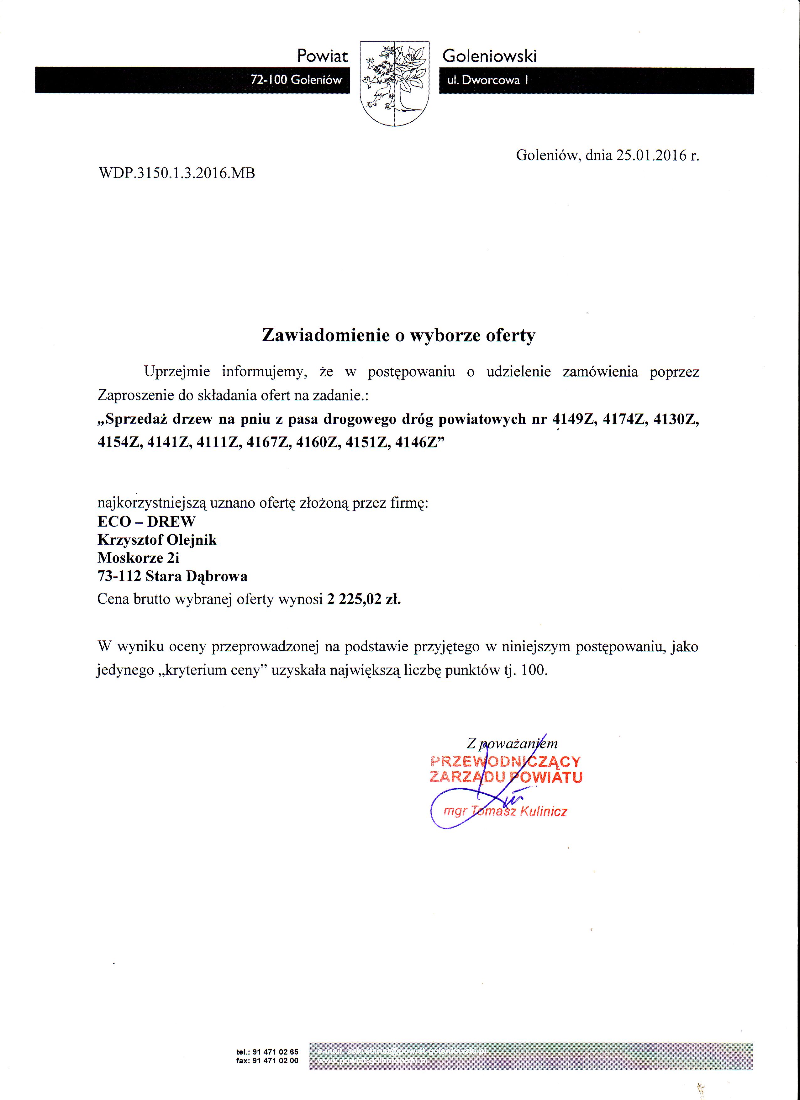 Sprzedaż drzew na pniu z pasa drogowego dróg powiatowych nr 4149Z, 4174Z, 4130Z, 4154Z, 4141Z, 4111Z, 4167Z, 4160Z, 4151Z, 4146Z