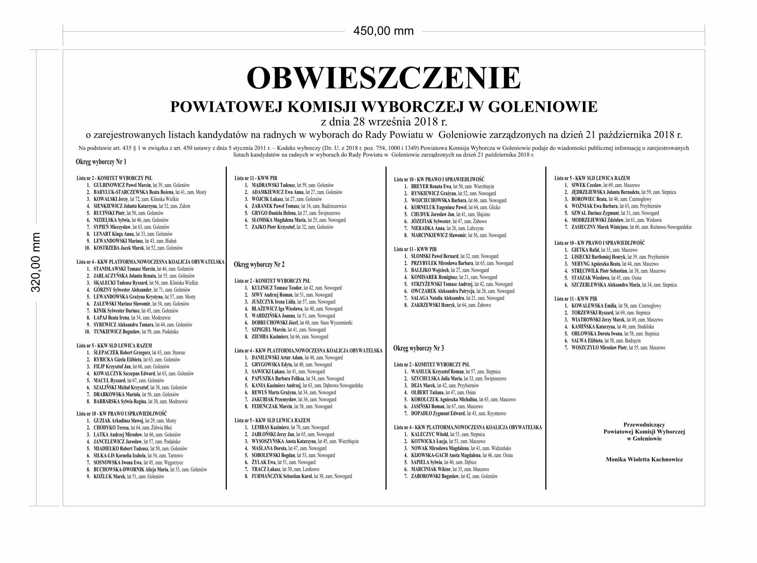 obwieszczenie o zarejestrowanych listach kandydatów na radnych do Rady Powiatu w Goleniowie.jpg